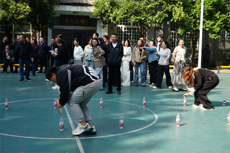 在職職工活動(dòng)設(shè)有象棋比賽、跳棋比賽、沙包投擲、快樂(lè)接力。棋類(lèi)對(duì)決盡顯智慧:楚河漢界間步步為營(yíng),彩色棋盤(pán)上妙招頻出。象棋賽場(chǎng),選手們時(shí)而雙眉緊鎖細(xì)算步數(shù),時(shí)而果斷落子展開(kāi)攻勢(shì);跳棋賽場(chǎng)則更顯策略性,選手們巧妙運(yùn)用“搭橋”戰(zhàn)術(shù)快速推進(jìn)。在投擲沙包時(shí),大家摩拳擦掌,爭(zhēng)先上場(chǎng),為爭(zhēng)取高分全力以赴。最富創(chuàng)意的“快樂(lè)接力”將活動(dòng)氣氛推向高潮,隊(duì)員們默契配合,爭(zhēng)分奪秒地完成“插筷-拔筷”任務(wù),現(xiàn)場(chǎng)歡呼聲與掌聲此起彼伏。